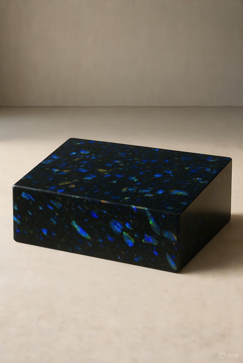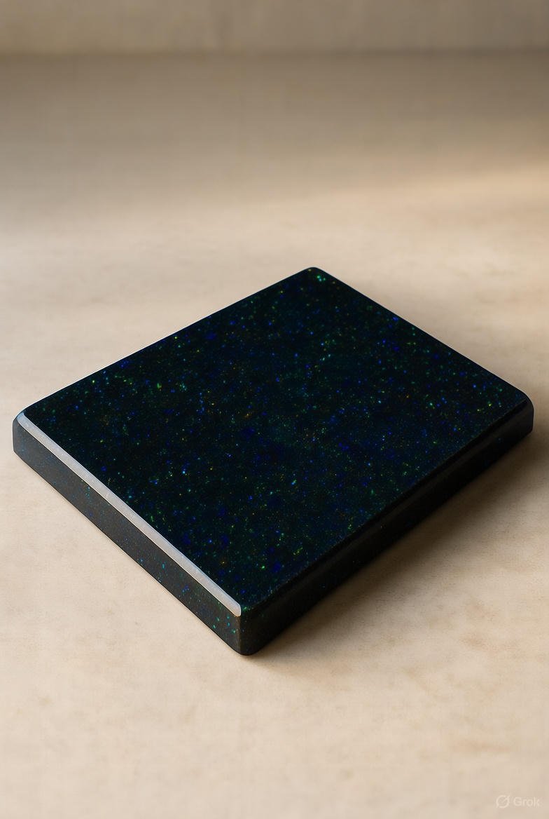 Black Opal is one of the rarest and most prized semi-precious stones. Celebrated for its captivating play of colour, it brings a unique, high-end aesthetic to interiors. Every table top made from Black Opal is one-of-a-kind, reflecting the stone’s natural depth and shimmering hues.