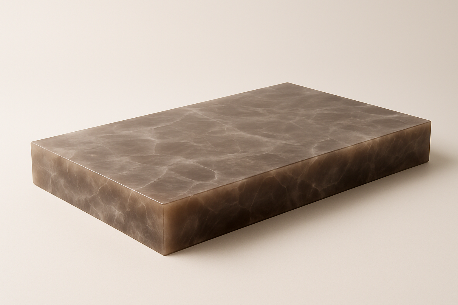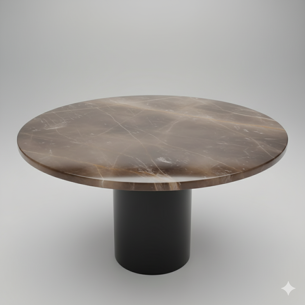 Smoky Quartz is a semi-precious stone admired for its rich, smoky brown-grey hue and gentle translucence. Formed naturally over millions of years, it adds depth and sophistication to interiors. Each table top displays unique veining and crystal inclusions, making every piece a one-of-a-kind work of art.