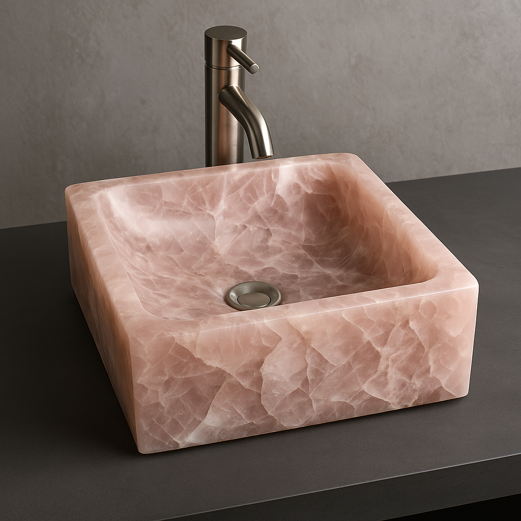 Rose Quartz, known as the “Stone of Love,” is a semi-precious crystal admired for its gentle pink hue and luminous qualities. Each piece is formed over millions of years, resulting in unique veining and crystalline patterns that turn every basin into a functional work of art. It is also durable and naturally smooth, making it ideal for everyday use.